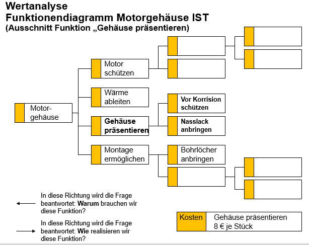 Ziel der Wertanalyse ist die Kosten zu minimieren ohne Kundennutzen zu senken. Der Kundennutzen steht immer im Vordergrund.