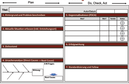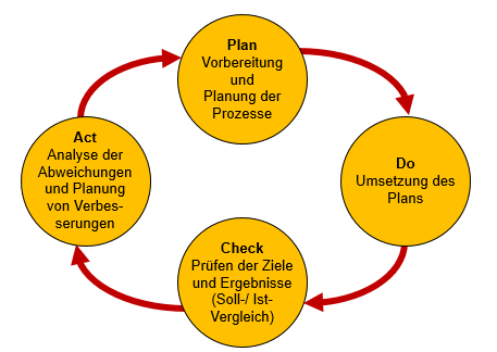 - Act: Analyse der Abweichungen von den geplanten Maßnahmen, standardisieren oder neu planen.