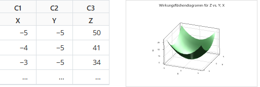 X- und Y-Variable können auf vielfältige Weise erstellt werden. Zum Darstellen als Wirkungsflächendiagramm kann auch eine Z-Achse hinzugefügt werden.